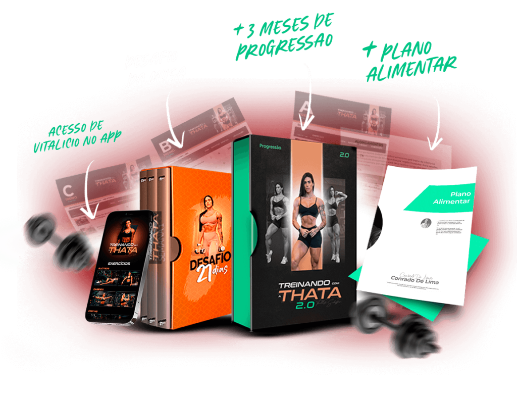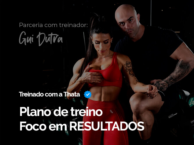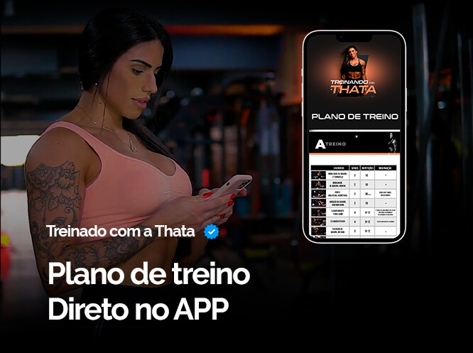 Treinando com a Thata, é um plano de treino de 12 semanas (3 meses) , onde você receberá um plano mensal de treino focado em resultados, de hipertrofia e definição.