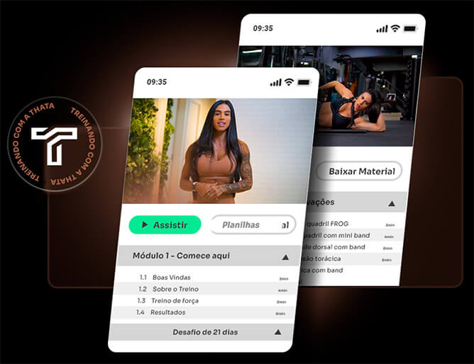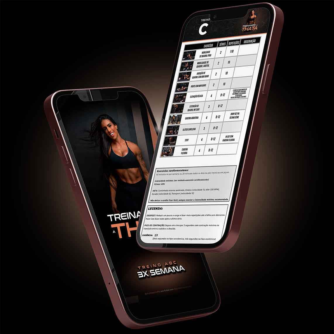 O Treinando com a Thata, são planilhas de treino de 12 semanas focados em resultados.